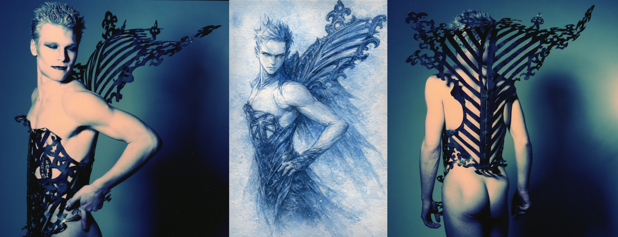 Wolfie often illustrates and sketches alongside photo character led mood boards, illustrating and communicating cinematic costume world builds.